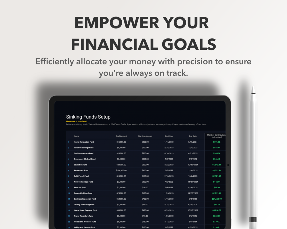 If you’ve been putting off saving for that long-overdue vacation, dream wedding, or any other big purchase, now is the time to act. You deserve a simple, clear path to reaching your financial goals, and this Sinking Funds Spreadsheet is your roadmap.